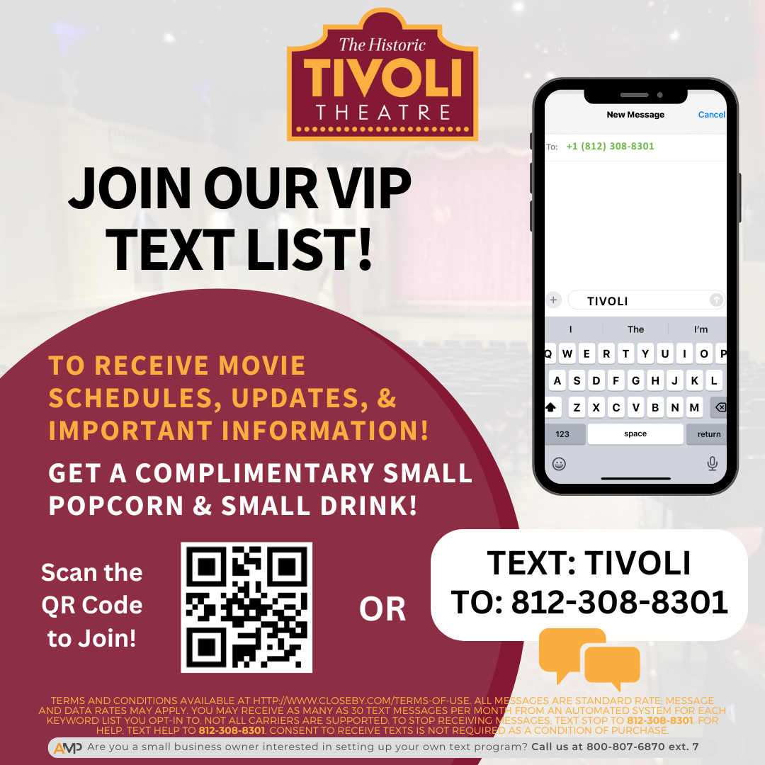 Since 1928, the Tivoli Theatre has been a steadfast believer in the magic of cinema and performing arts. Our mission is to enrich lives by providing affordable entertainment that both inspires and strengthens our surrounding communities.
